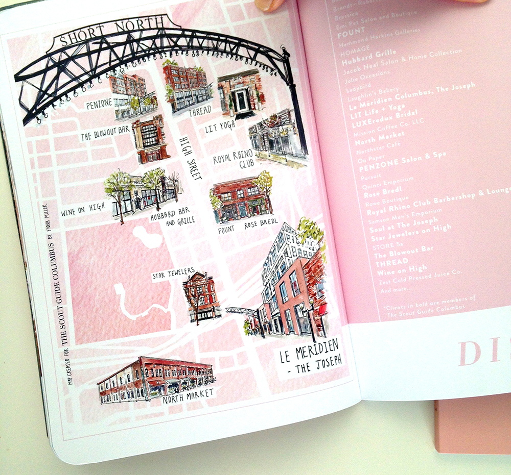I work with business owners to create custom watercolor designs that highlight the personality of the business brand and help to tell the unique story of their business. Depending on the nature of the business this may be a painted image of a storefront, an illustrated map that introduces customers to the business ethos and location, an illustrated business logo, or a series of supporting illustrations to make a website more eyecatching : all creatively combining brand identity into visual solutions that work for the business needs.